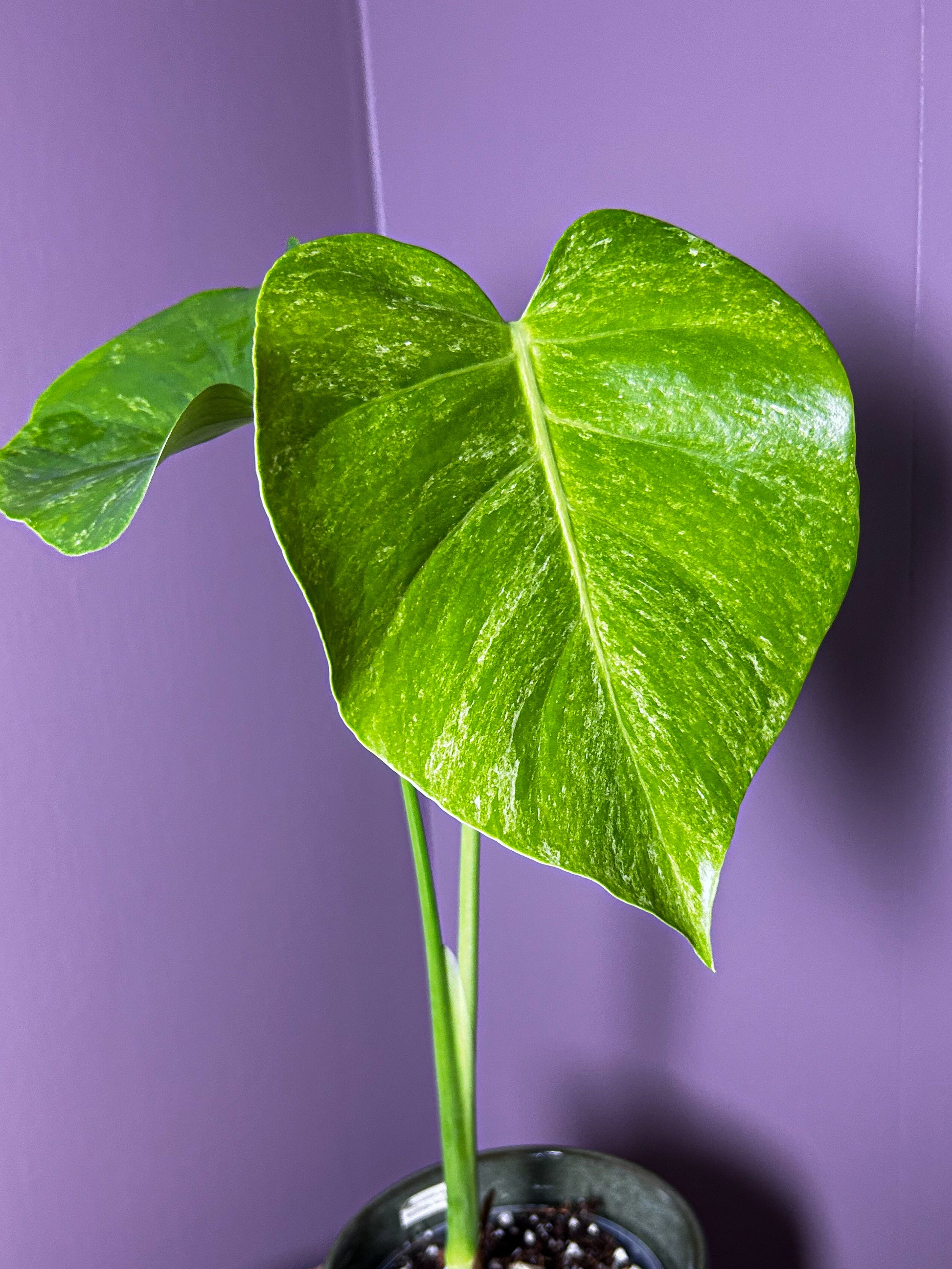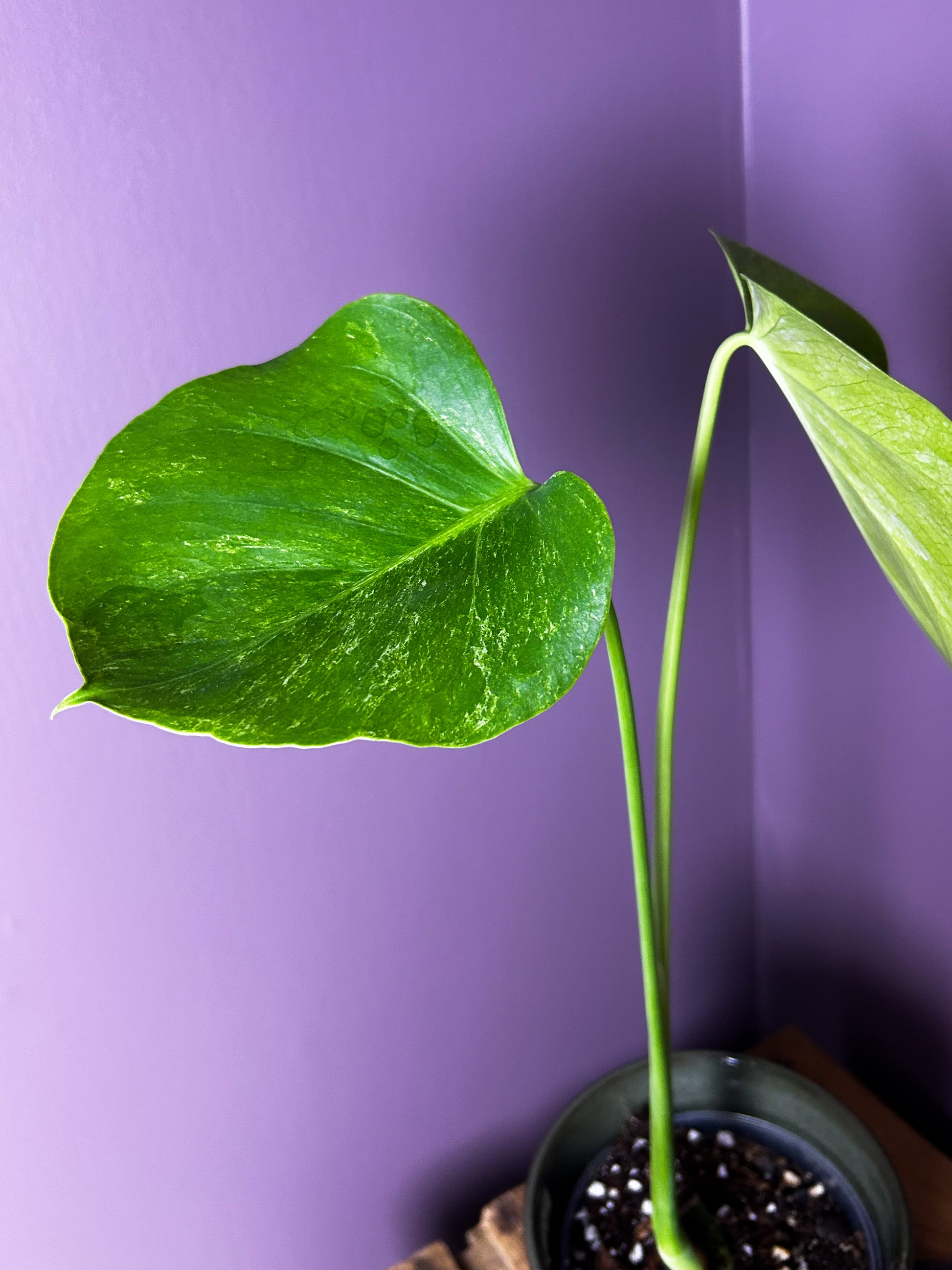 Silver Sands is a rare large form Monstera with white textured variegation that spreads out in a wave-like pattern across the leaves. The Silver Sands tend to become more variegated as it matures.